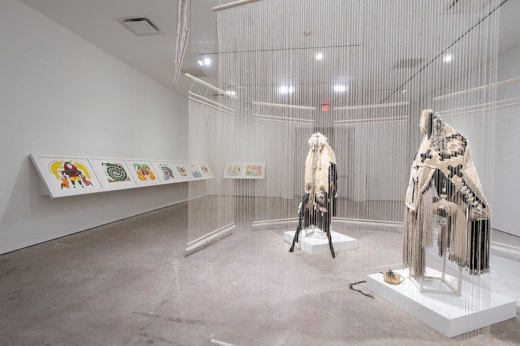 Eric-Paul Riege (Diné) is a weaver and fiber artist working in collage, durational performance, installation, woven sculpture, and wearable art. Using weaving as both means and metaphor to tell hybrid tales that interlace stories from Diné spirituality with his own interpretations and cosmology, he understands his artworks as animate and mobile. His practice pays homage and links him to generations of weavers in his family that aids him in generating spaces of sanctuary.