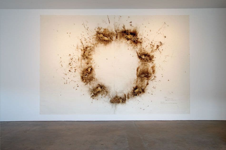 He explains, “In my hometown every significant social occasion of any kind, good or bad – weddings, funerals, the birth of a baby, a new home – is marked by the explosion of firecrackers…Firecrackers are like the town crier, announcing whatever’s going on in the town.” For Cai, explosive forces – whether from gunpowder, fireworks, or even the atomic bomb – go beyond any national or political context. Their origins in alchemy and fundamental physics invoke curative, transformative power and spiritual questions whose scope is eternal rather than immediate, universal rather than local, and metaphysical rather than mundane.