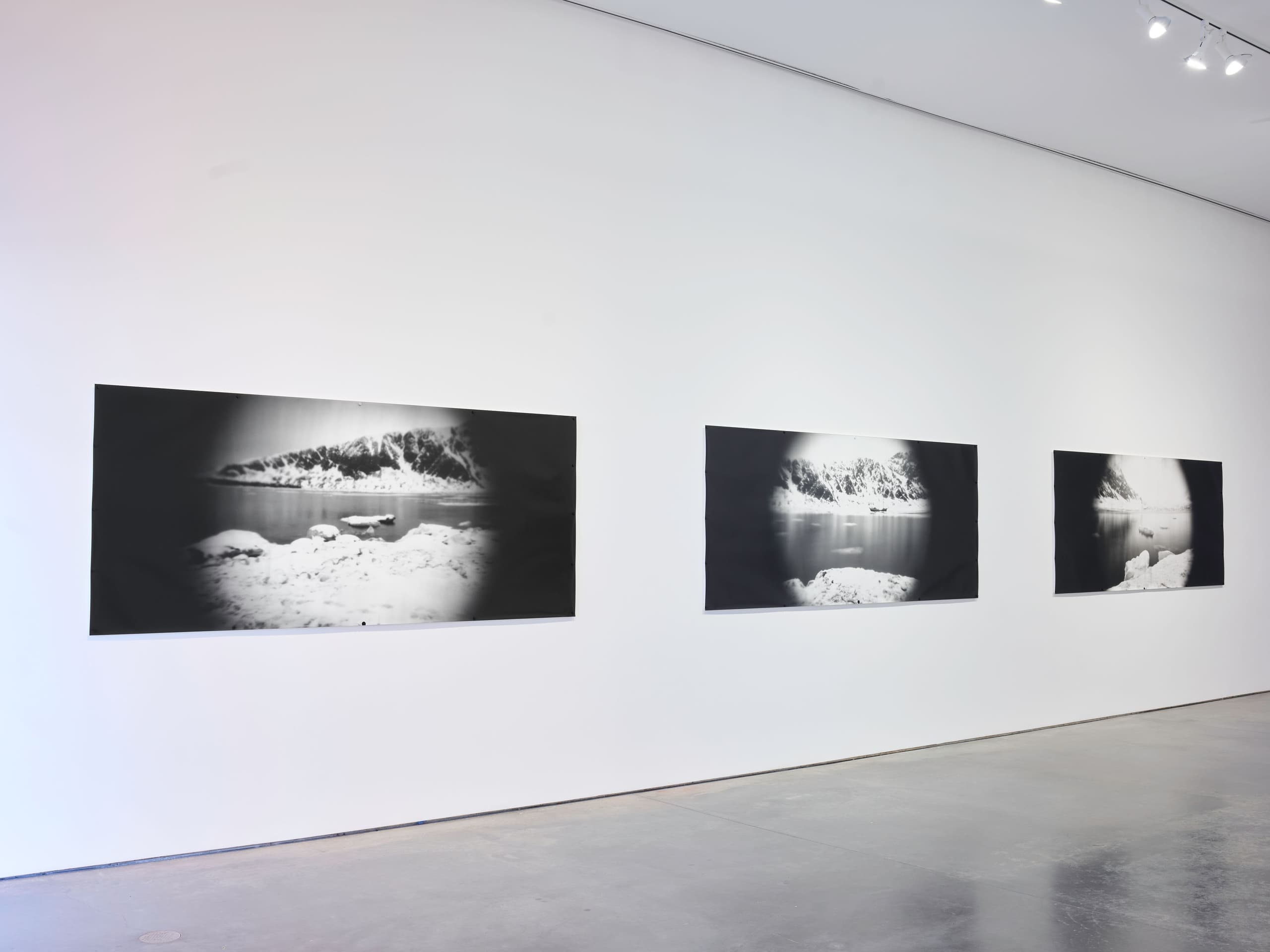 The exhibition centers on a series of large-scale photographs of Arctic landscapes, made with a lens the artist fashioned from the ice of the region’s glaciers. Duke describes how, as early indicators of global warming, glaciers loom large in the collective unconscious. Here the artist employs this charged material to transcend photography’s role as a document, making works that contemplate our intertwined existence with a rapidly changing environment.