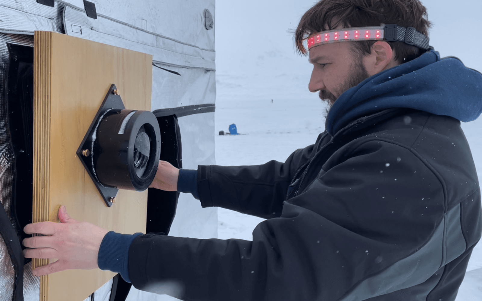 The project began in the spring of 2022, when Duke embarked on an Arctic expedition with an unusual goal: to locate ice clear enough to shape into a functioning camera lens. The resulting portraits of glaciers—focused through their own ice—were recorded on giant negatives, using a deployable tent camera.