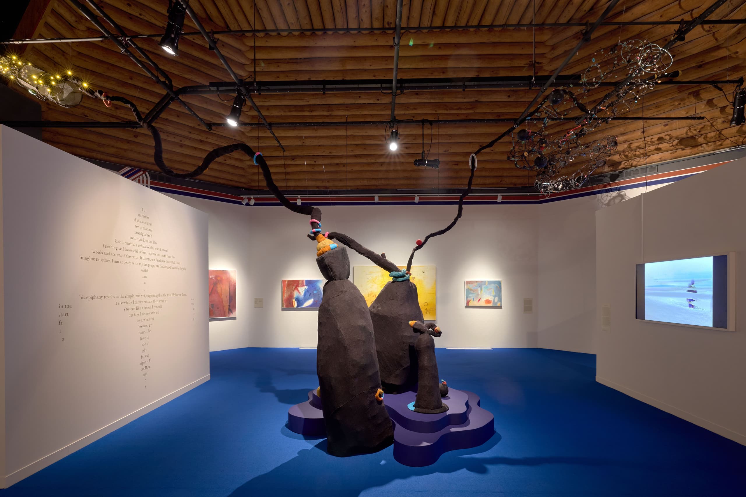 Naranjo Morse works in several mediums, including organic materials. The ephemeral installation “Always Becoming,” made of clays, packed earth, wood and stone, can be seen at the Smithsonian’s National Museum of the American Indian. A feature-length documentary focuses on the making of the five “Always Becoming” sculptures and the themes of land and community behind the installation concept.