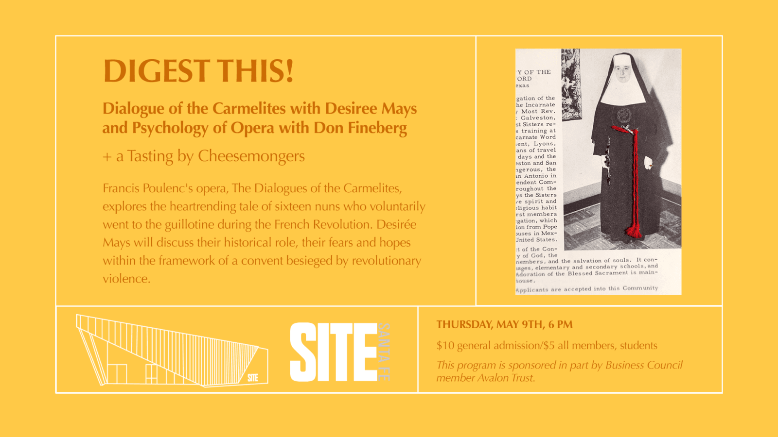 Dialogue of the Carmelites with Desiree Mays and Psychology of Opera with Don Fineberg and a Tasting by Cheesemongers