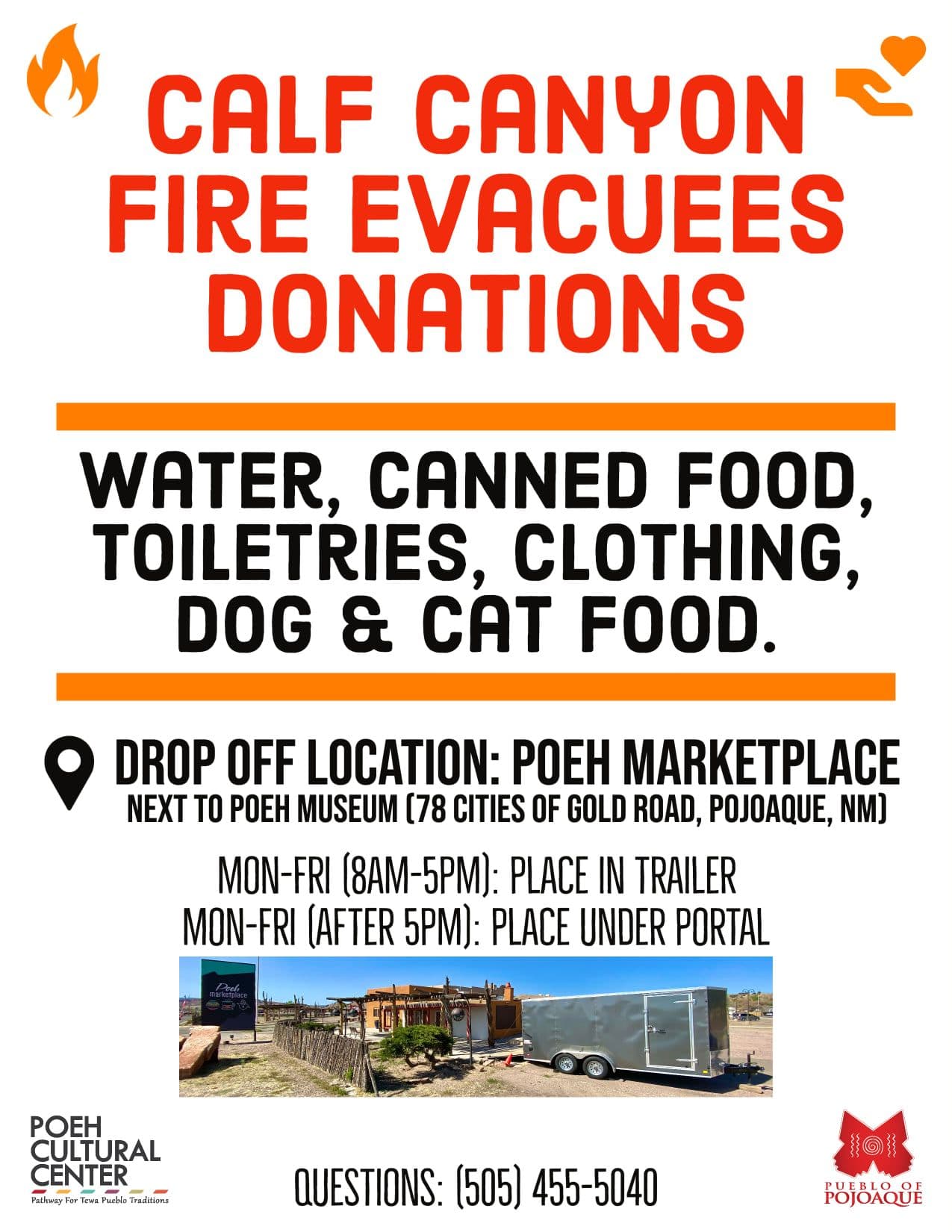 During the opening weekend, we will be collecting donations of water, canned food, clothing, and cat and dog food all weekend to bring up to the Poeh Cultural Center on behalf of evacuees of Calf Canyon Fires.