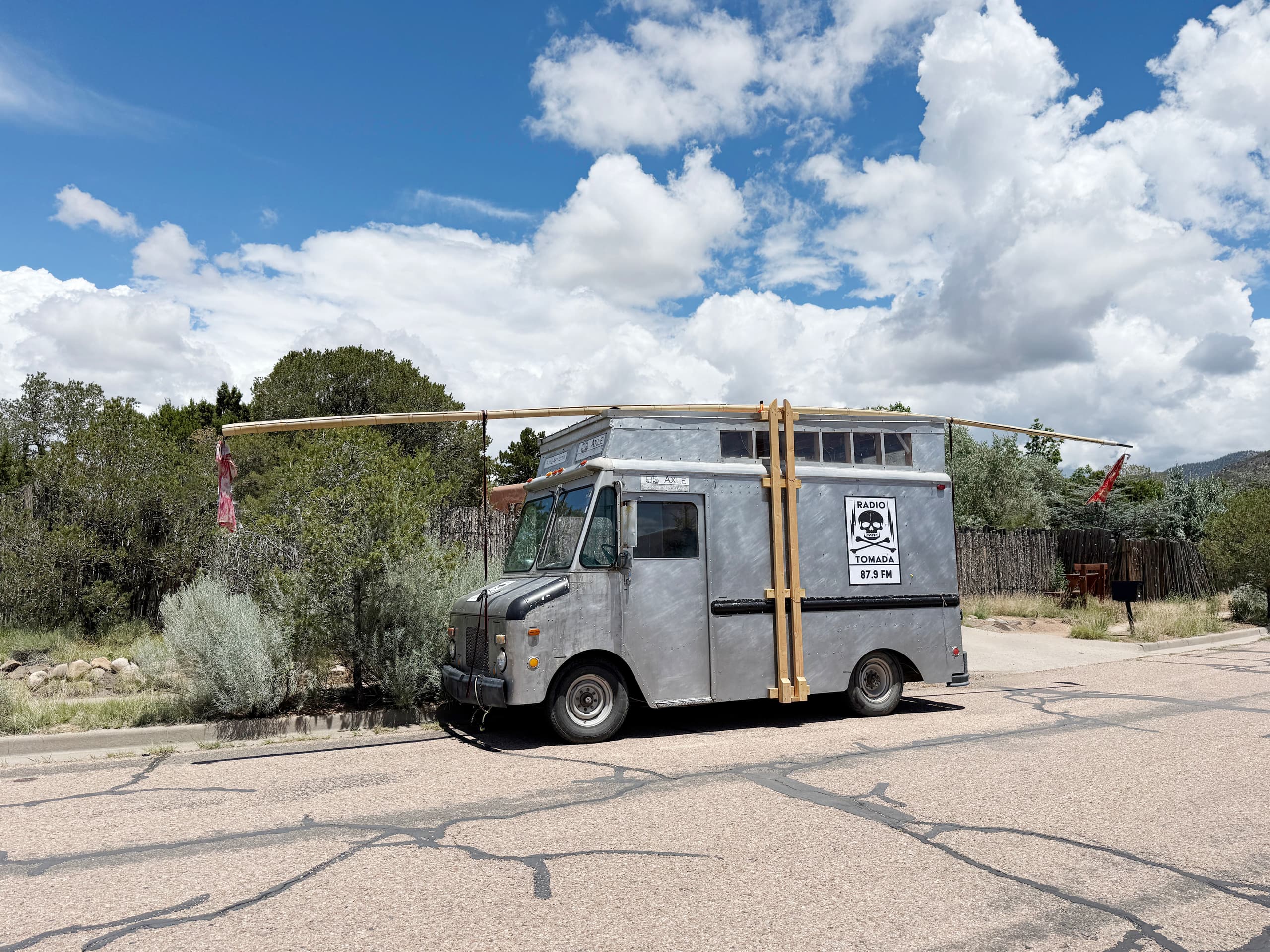 Radio Tomada is a mobile radio broadcast platform, housed in the Axle Contemporary mobile artspace and traveling around Santa Fe and Northern New Mexico from June 27 through August 17, 2025.