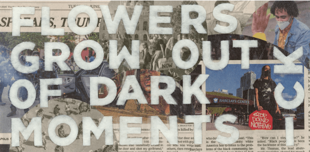 Christine Sullivan, "Flowers Grow Out of Dark Moments / Corita Kent", Felt and newspaper collage