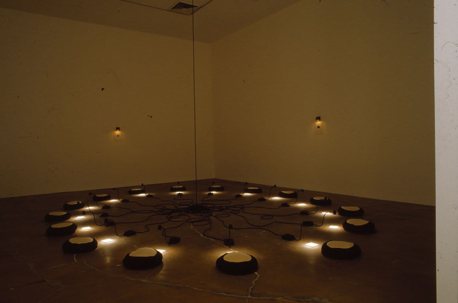 Also part of the exhibition, TIDE, 1995, featuring four sets of cast bronze coffee mugs placed on the floor suggests the simple beauty of everyday objects while offering subtle allusions to intersections of presence and absence, fullness and emptiness.