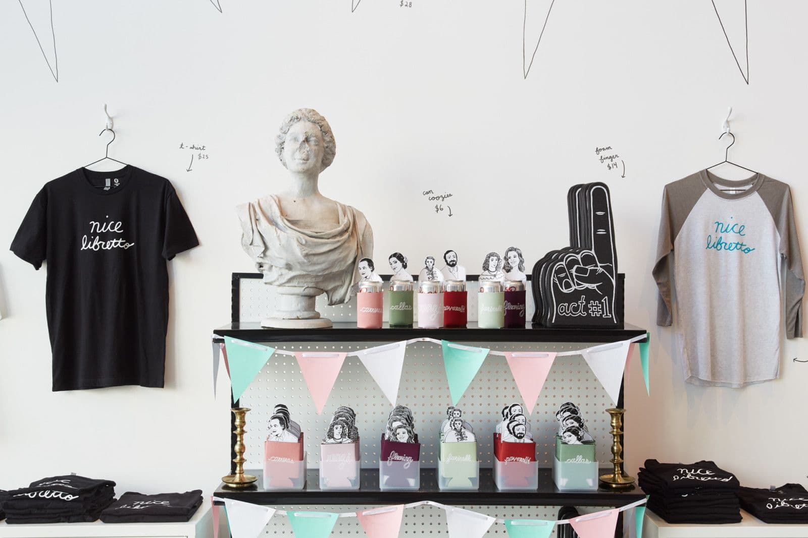 As part of my research, I saw my first opera, La Bohème at the Santa Fe Opera House. I was struck by the fandom and dedication that surrounded it. We all collect and appreciate and cheer and support the culture around us in different ways and at different depths of enthusiasm, and every fanbase is different. Some are more visible than others, and most offer ways to individually express loyalty. I own a Cheesehead and have made the trip to 1265 Lombardi Avenue in Green Bay. With this in mind, I created a few lines of merchandise for opera fans, using the language of sports paraphernalia paired with the history of opera.