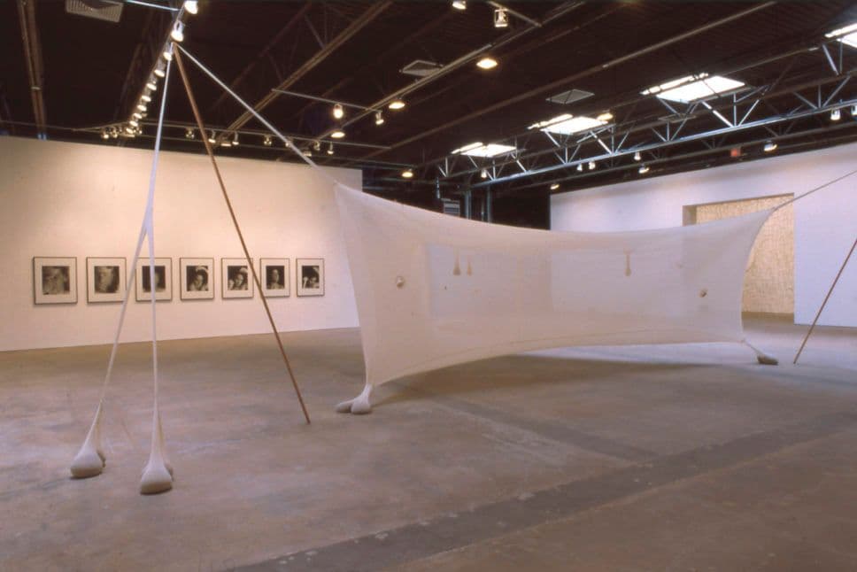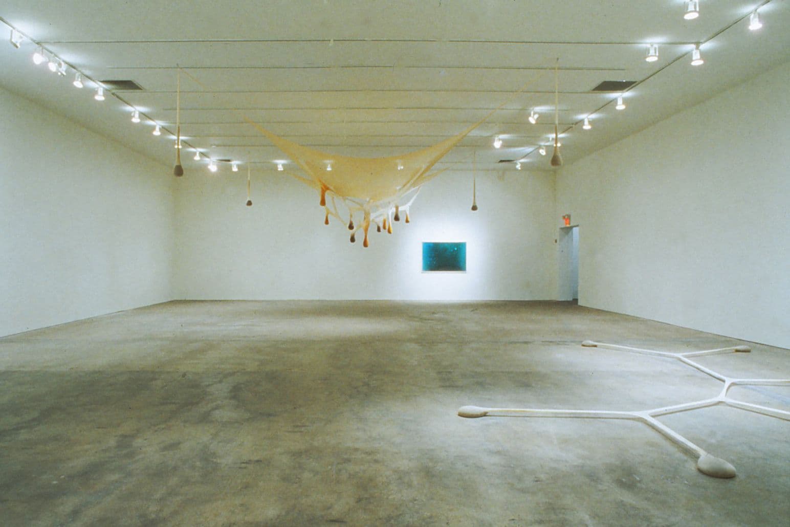 Ernesto Neto’s body of art can easily be associated with the traditions of other well-known Brazilian artists, Lygia Clark and Hélio Oiticica. The viewer becomes the participant in his large, room-sized membranous chamber works. To create an experience of sensorial body-consciousness, Neto manipulates space, light, sound, smell and texture, using only modest materials such as nylons, spices, and sand to do so.