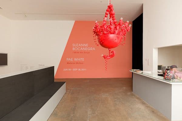 Pae White’s works have been included in Skulptur Projekte Münster 07 (2007), the 53rd Venice Bienniale (2009), and the Whitney Biennial (2010). White has had solo exhibitions at the Hirshhorn Museum and Sculpture Garden, Washington D.C., and the Manchester Art Gallery, among others. She lives and works in Los Angeles.
