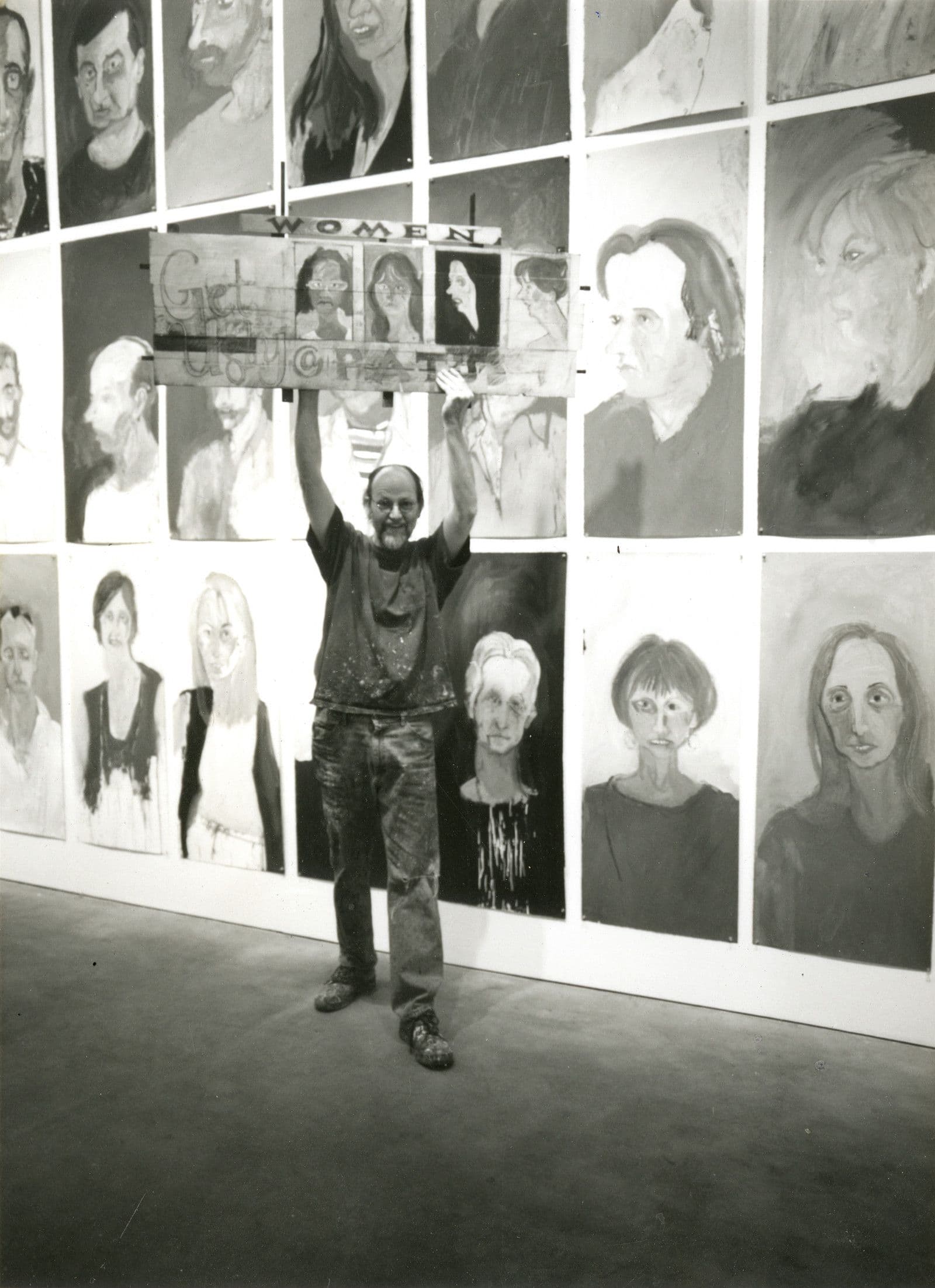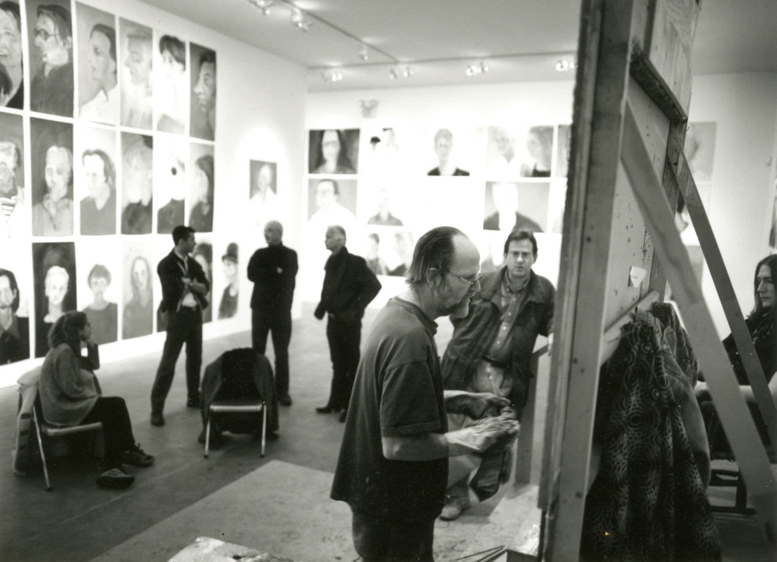 In 1993, Patrick McFarlin began inviting friends to his studio to sit for quick oil portraits and a chat. The impetus for this open studio salon was to break through the pall that had settled over midcareer artists following the art-market bust. The get-togethers took on a life of their own, and by 1995 the gatherings not only acquired the name Pat’s Downtown Club but went public with a series of open-studio events: eighty vivid portraits, hung floor-to-ceiling, were at once an exhibition and a backdrop for poetry readings and performance artists.