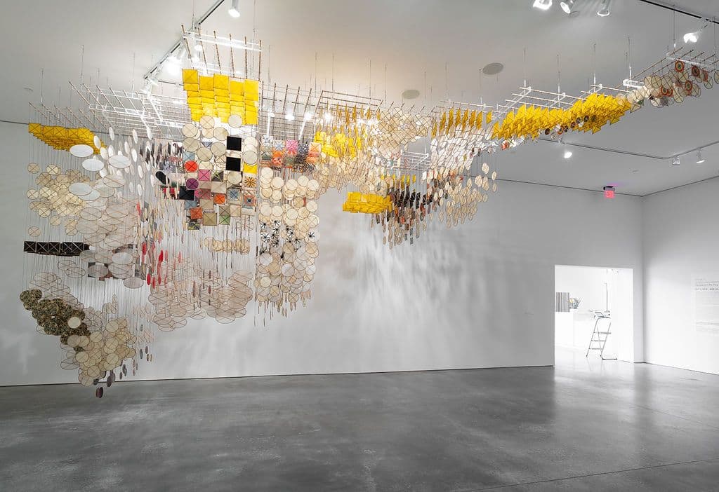 SITE SANTA FE presents a solo exhibition by New York-based artist Jacob Hashimoto from October 5, 2018 – March 18, 2019. This exhibition features a range of new and recent works as well as a site-specific installation that integrates SITElab’s unique architecture. The exhibition, entitled The Dark Isn’t The Thing To Worry About, explores the balance of the natural world, and Hashimoto’s longtime fascination with the intersections of painting and sculpture, abstraction and landscape. Exploring these intersections, Hashimoto creates distinctive works comprising hundreds of bamboo and paper elements strung together and suspended, forming complex layered compositions. His accretive works reference video games, virtual environments, and cosmology, while remaining deeply rooted in art-historical traditions, notably landscape-based abstraction, modernism, and handcraft.