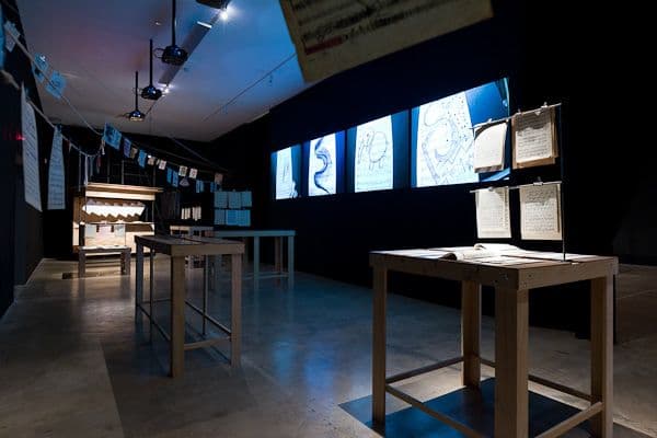 Other works involve amateur and professional musicians in the translation process. After Rerememberer used the patterns in a fragment of a Danish textile to create an hour-long performance involving an accordionist, a weaver on an amplified looms, and fifty untrained violinists, among other elements. I Write the Songs, first performed at the River to River Festival in New York, featured the FLUX Quartet interpreting as music, the drawings created on sheet music by audience members.