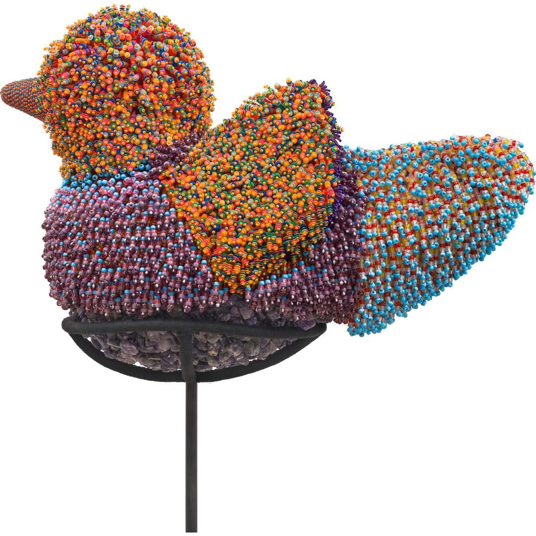 Indeed, what Brazilian artists and critics of the early twentieth century famously referred to as anthropofogia (cultural cannibalism, of sorts) is intrinsic to the process of art becoming modern. Gibson's bead-encrusted bird sculptures if there is no struggle there is no progress and we are the witnesses are thus a rebuttal to the historical dismissal of such hybrid objects and artists.
